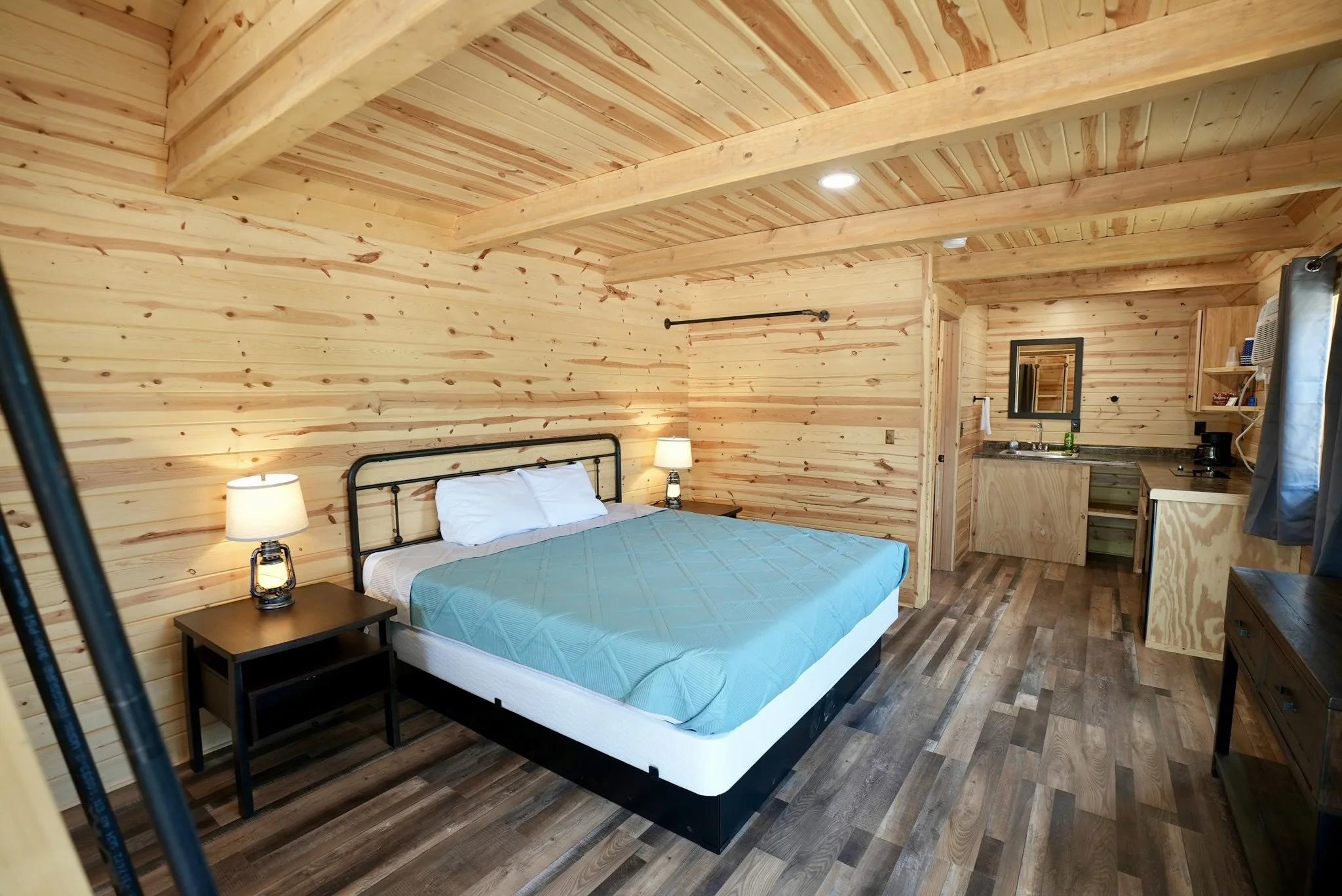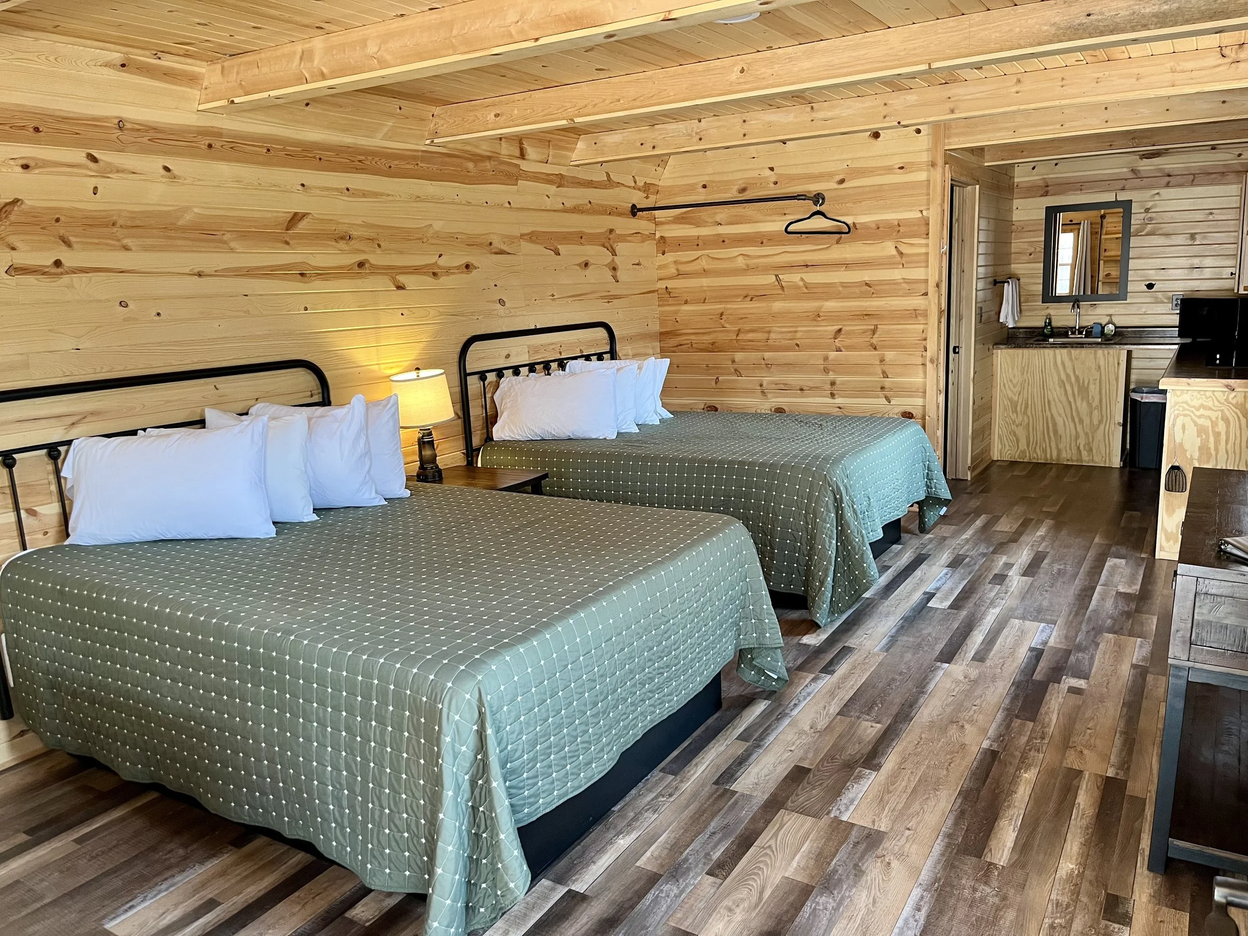 Pine Haven Campground has 30 brand-new, comfortable, clean cabins featuring complete bathrooms and kitchenettes. Cabins sleep 4-6 and feature either a single king bed or double queens, as well as a children’s loft with a full bed. You’ll feel right at home with air conditioning, streaming services, hot showers, and WiFi.